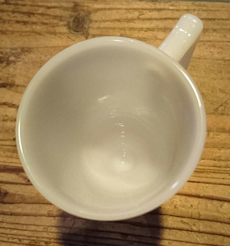 足付きで背が高く全体的なシルエットは細身に見えますが、容量は240ccは入りますので普通のマグと大差はないですね。