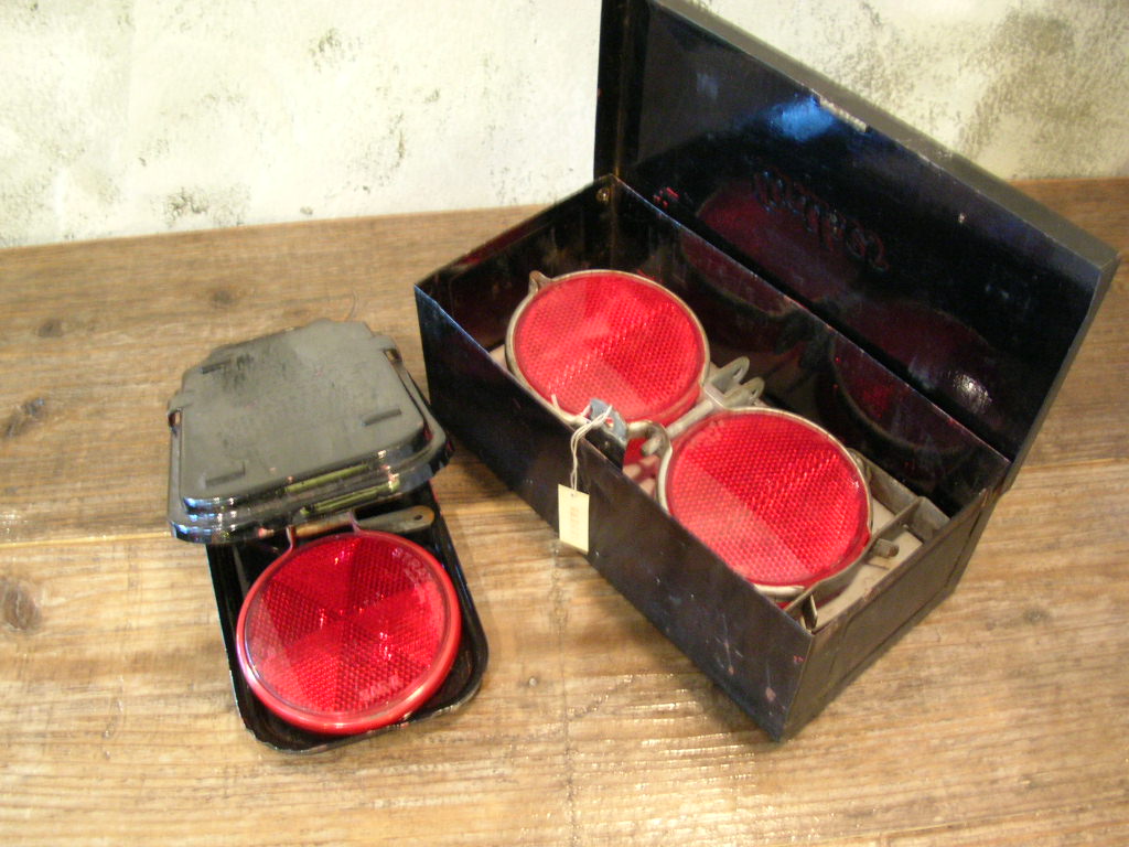 車の緊急停車時に使う反射盤です。現在では三角形の反射盤が一般的ですが、昔はこんなのを使ってたようです。