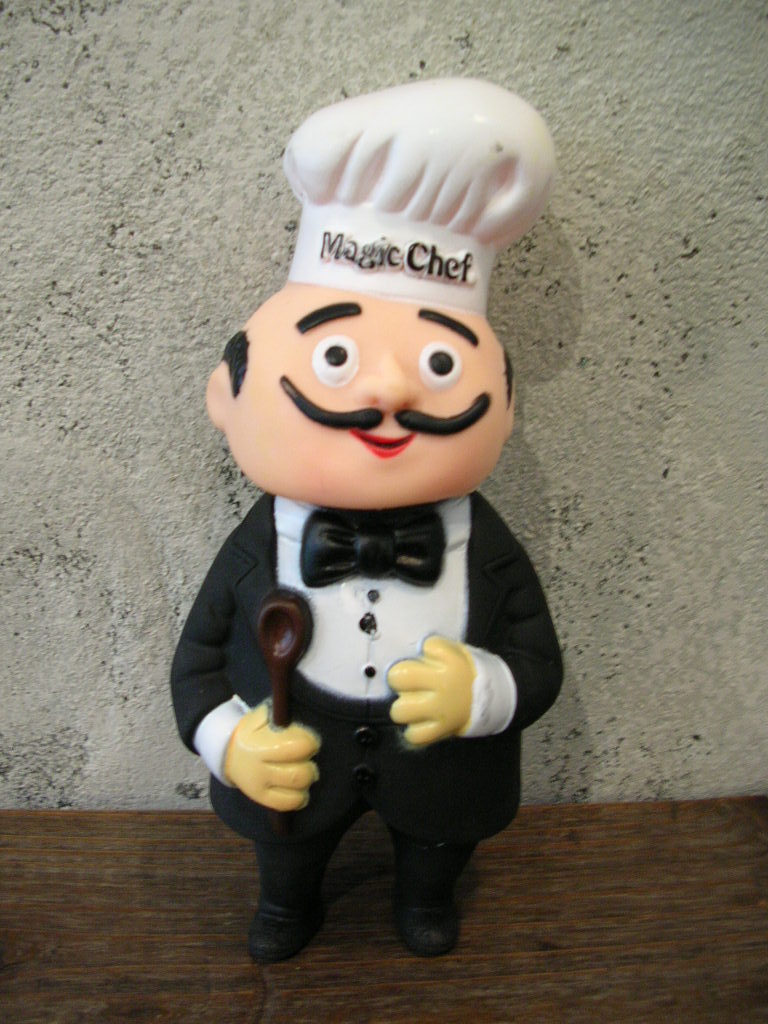 コックスタイルなのでレストランのイメージをしてしまいがちですが、米国ではメジャー&定番のキッチン機器メーカーmagic chef社の親父です。