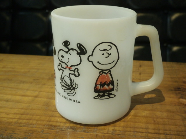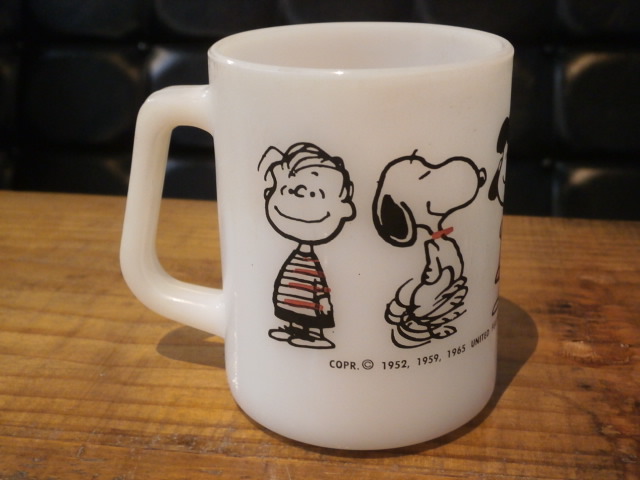 古いミルクグラスマグのスヌーピー物はファイヤーキングのイメージが強いのですが、フェデラルマグでも存在します。