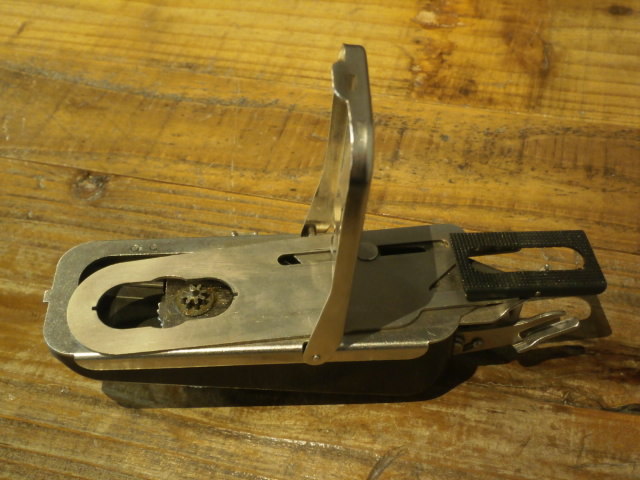 ミシン周りのアイテムですが、黒い本体や底面、メカニカルな接続部、グリーンの専用ケースなどがインダストリアル系を感じますね。