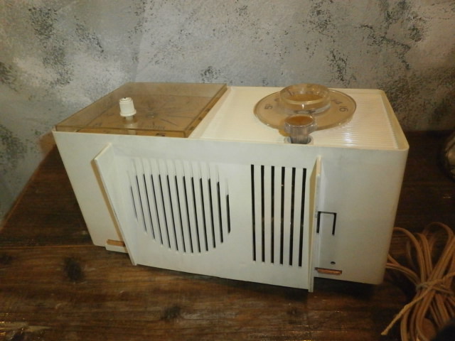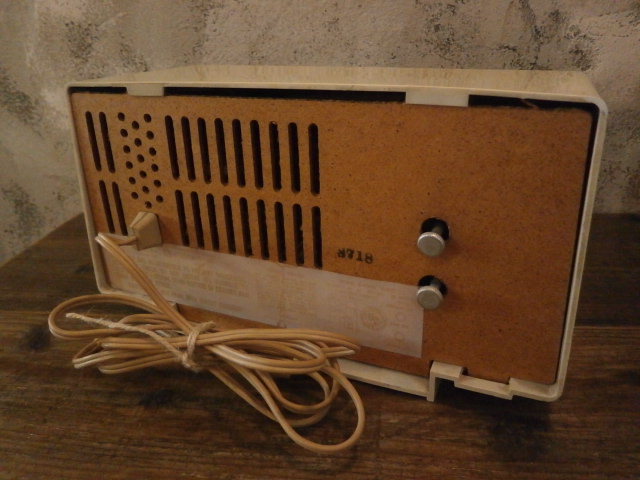 時計部分のアラーム針をセットしておくと、ラジオが鳴る仕組みです。目覚ましラジオですね。(アラーム音は鳴りません)