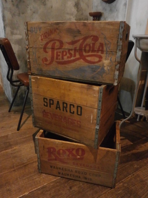 どれもソフトドリンクメーカーの木箱です。 この中ではペプシがメジャーですね。