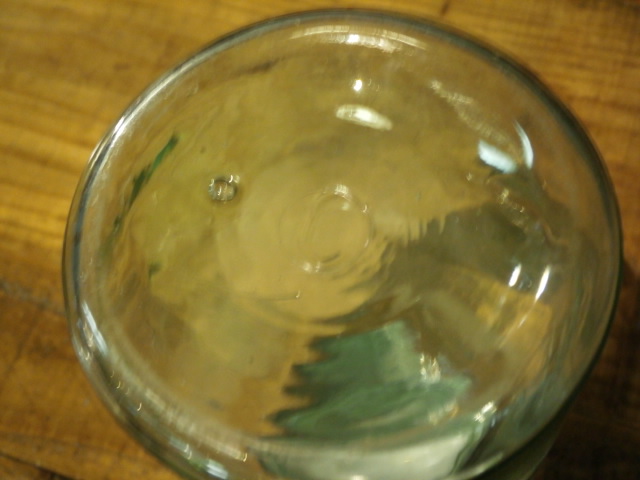 古いガラス製品独特の歪んで波うった感じと、所々に気泡が確認出来ます。