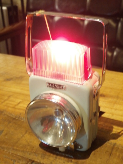 側面の電灯部分(白色)と、上部には赤色ランプ(こちらは点滅します)がついています。