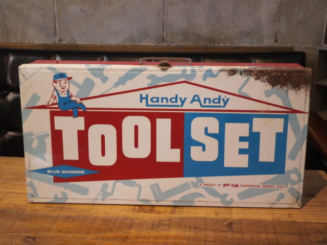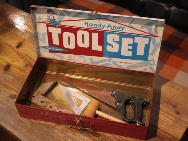 アメリカの企業キャラクターにありがちな笑顔と、明るい目の配色はツールボックスらしからぬ感じですが、実は子供用のツールボックスです。