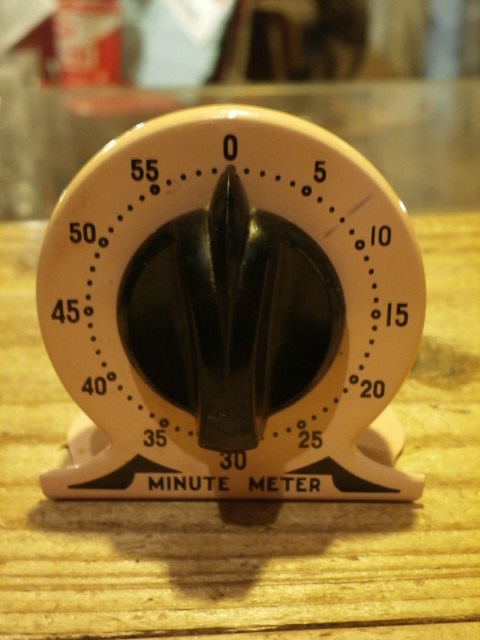 オールスチールの60分計でカチカチと機械的な乾いた音で分を刻みます。