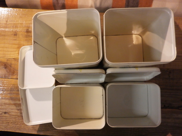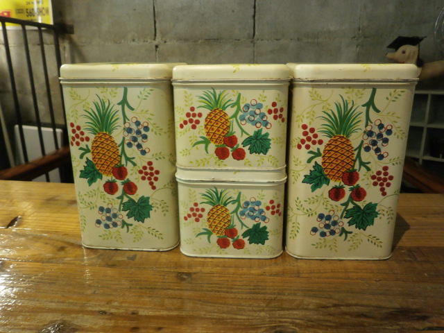 古いキャニスター類は数が揃っている割合が少なく、またティン素材は内側まで錆びている物も多いので良い物が限られてきます。