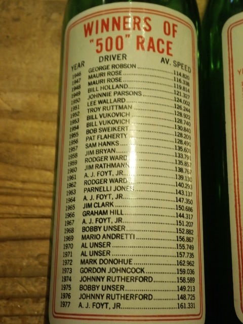 7up Souvenir Bottle INDIANAPOLIS 500