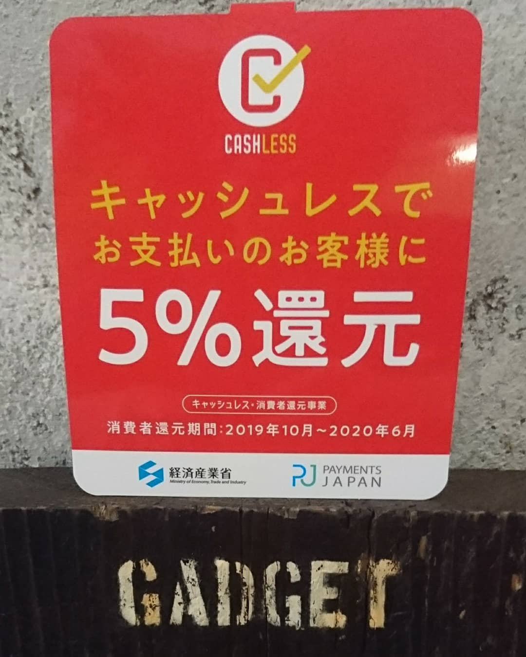 2019年~20020年6月の間、キャッシュレスでお支払いで5%還元。
