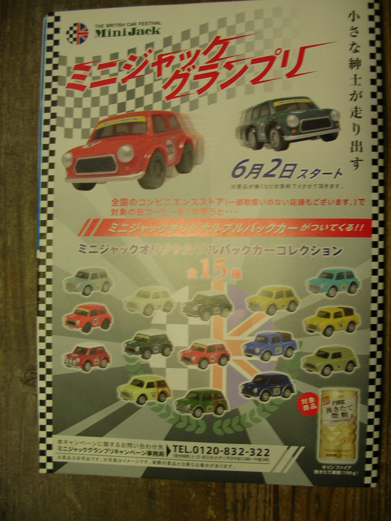 今年でミニ生誕50年にあたり、タイアップでコンビニの缶コーヒーにミニのミニカー付きが事前に販売されたりもしてました。(もちろん入手済)15種の販売でしたが最後の16台目は、このミニジャックでしか手に入らない隠し技があり、ミニとは無関係ながらのチョロQ(ミニカー)コレクターの方々も多数来られてたようです。(どおりで日本車も多かったわけだ)