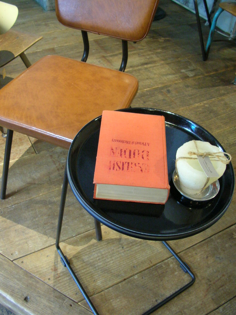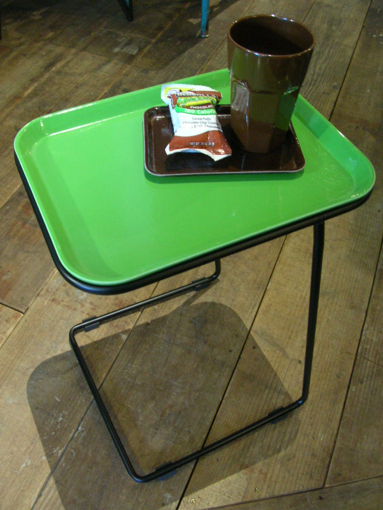 こちらはカムトレーにスチールワイヤーの脚部を組み合わせたサイドテーブルです。