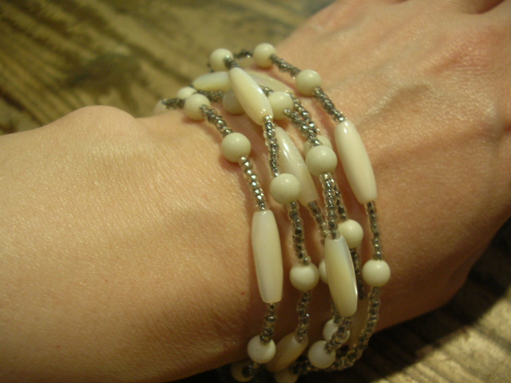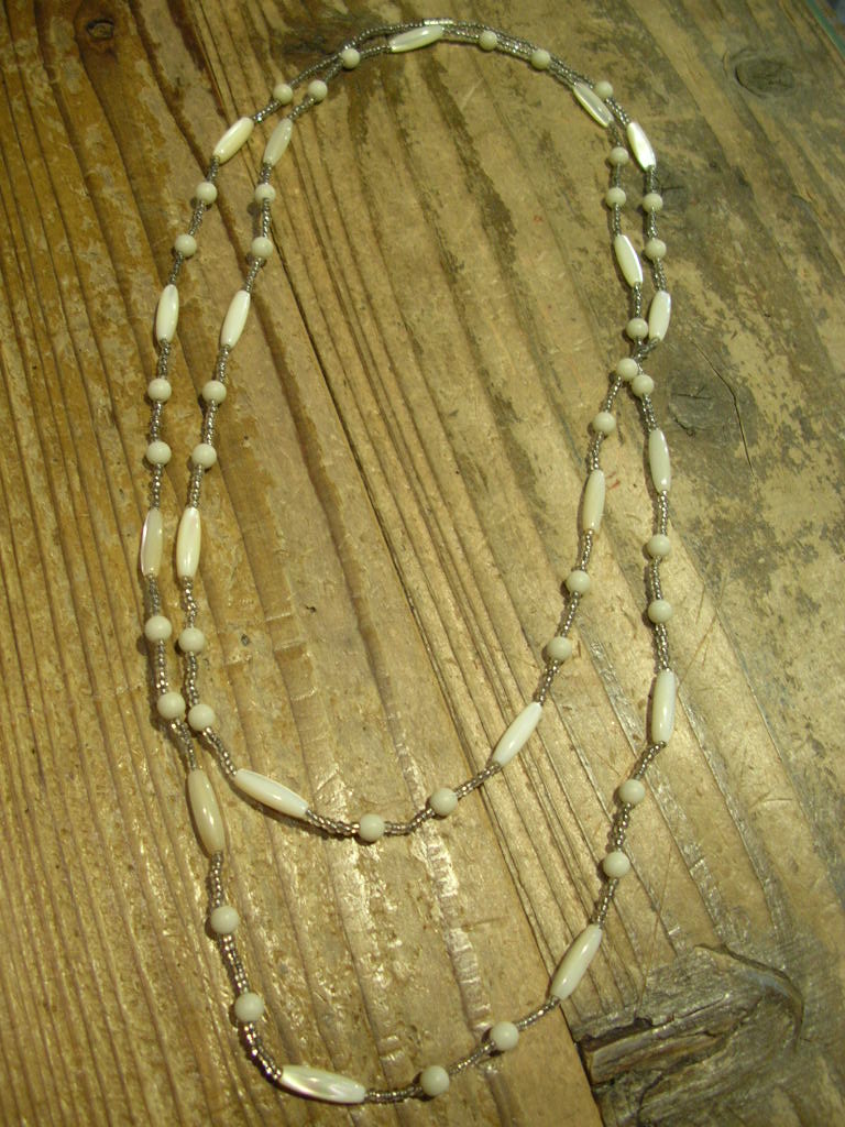ビーズで作られ、見た目もとても涼しげでかわいい色合いのネックレスです。