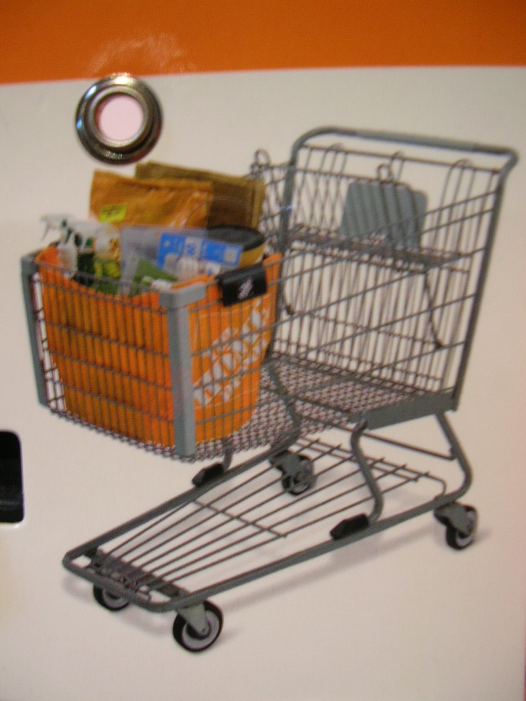 このようにカートやバスケットに引っ掛けて使うことが出来ます。