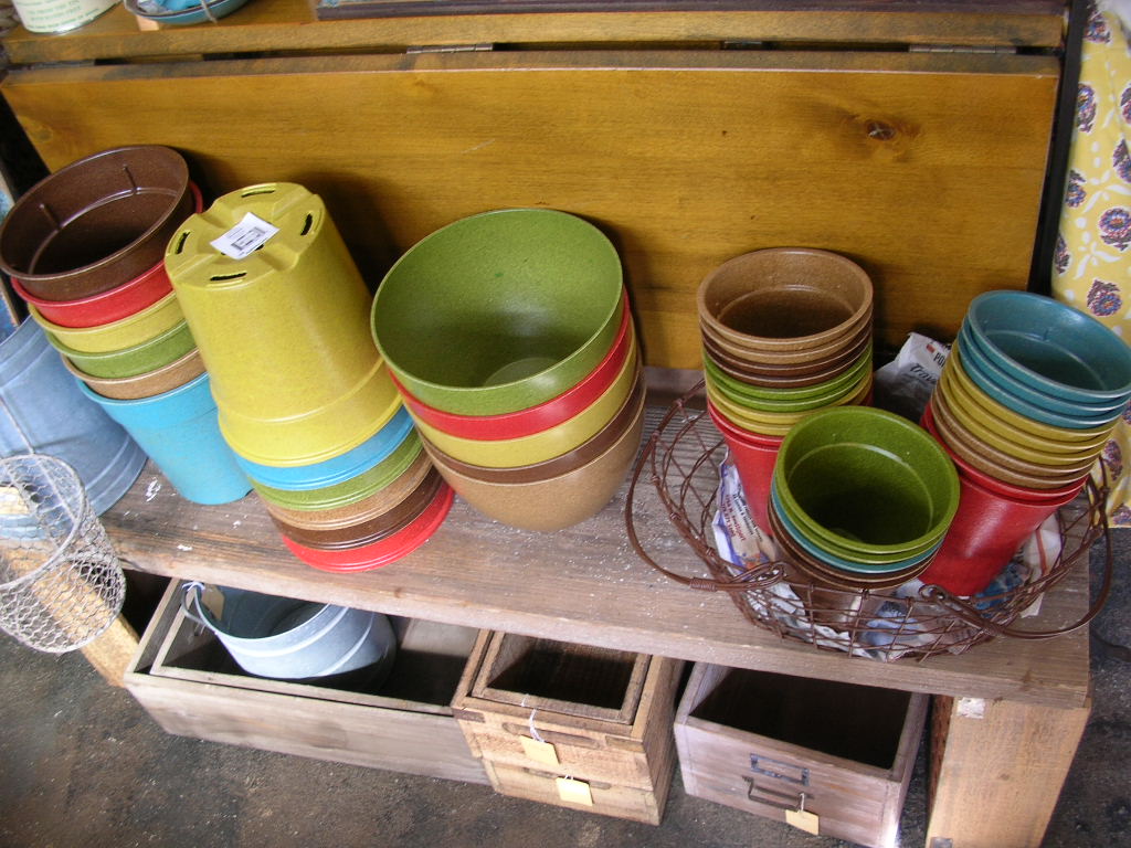 ということで、カラフルなエコポット類を中心にガーデン小物類展開中でございます!!