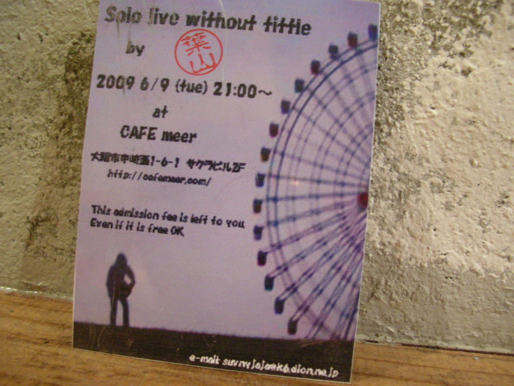 先週の火曜はいつもより少し早く閉店させていただき、友人H君(カードに名が出てますが)(笑)のファースト・ソロ ライブに行ってきました。