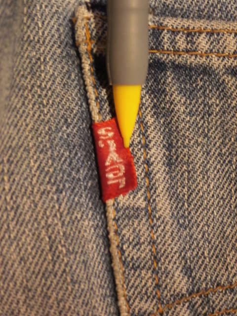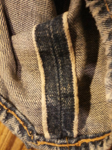 オールドリーバイスの判別の境目となるバックポケット部のシングルステッチ。そして赤耳。